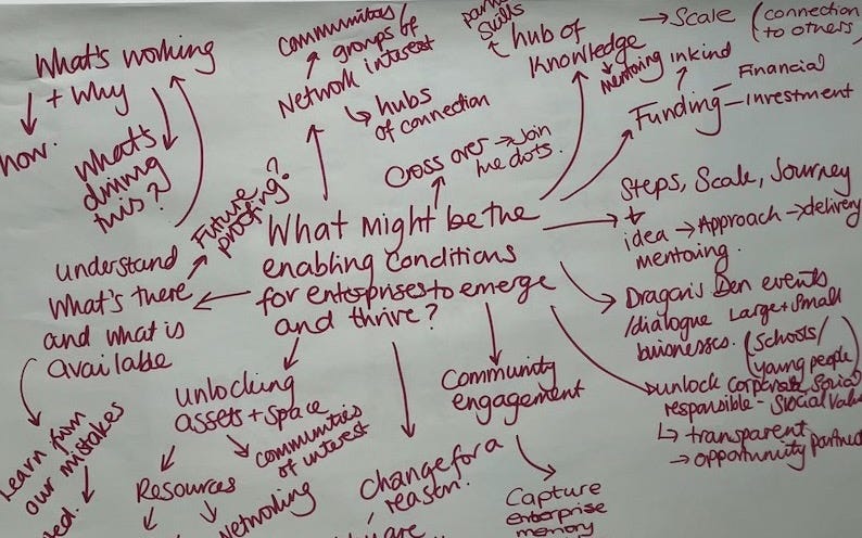 Meanwhile, there’s plenty of practical work that can begin to make a difference in places that can bring people together, relocalise pro-social and pro-ecological economic activity, and ameliorate the concerns that fuel populist extremism. One of the powerful drivers of economic change is entrepreneurship and the innovations they can bring into being - social, organisational, financial, business model, relational, technological, and so on. They can create opportunities for meaningful livelihoods and expand our ideas about what’s possible. If we’re interested in the kinds of change represented by the various streams of, let’s say, the wider post-growth economics movement, then it will take people to put those ideas into practice, conceiving and starting up the enterprises and institutions that bring these ideas of change into tangible existence.