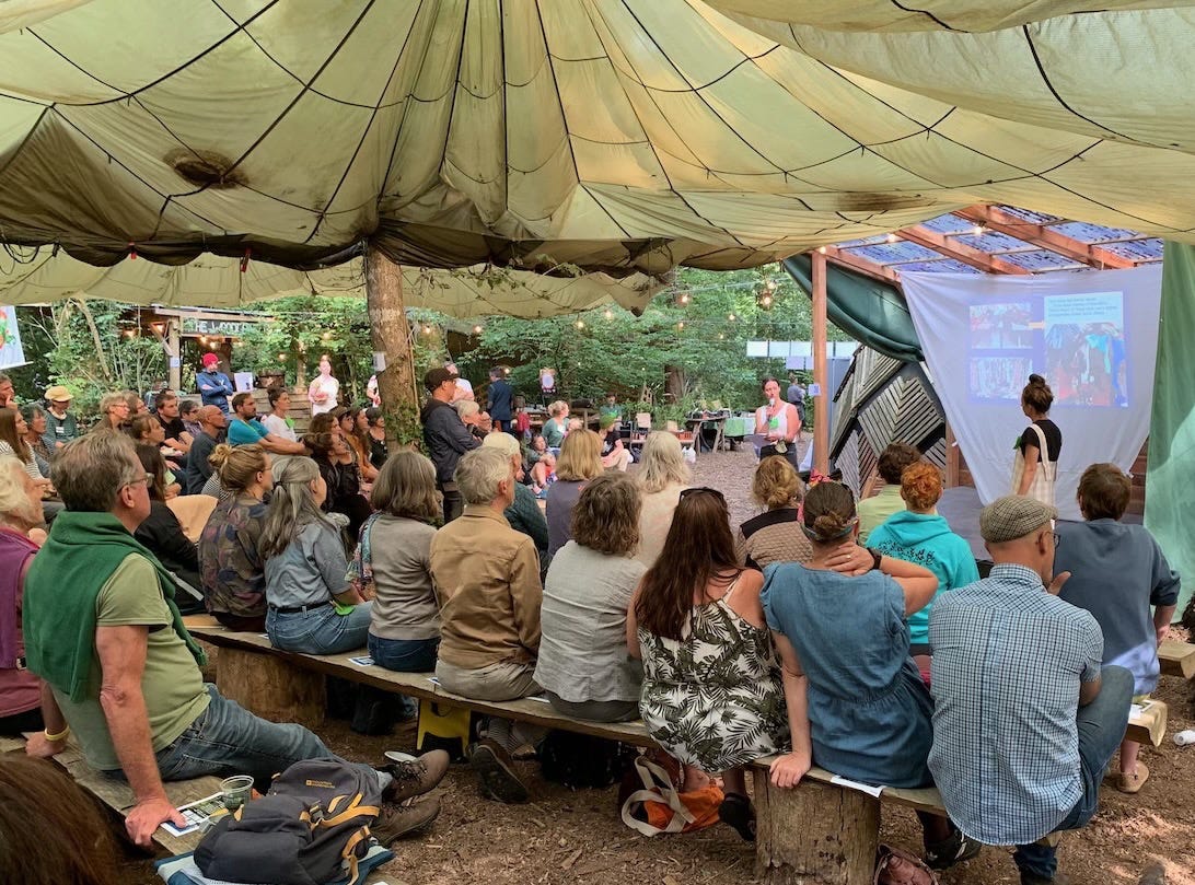 In Totnes, where I live and work, this pattern is emerging as well, imperfect and incomplete as it may be. It’s the home of the first Transition Town initiative in 2006 from which sprung several projects that contributed to this ecological, pro-social entrepreneurial ecosystem. The Totnes Renewable Energy Society emerged from an early TTT open space event and is nationally recognized as a leading innovator in the community renewable energy space. The Totnes Reconomy Project started in 2012 and began running the annual Local Entrepreneur Forum & Community of Dragons. After 14 years, it has coached 55 pitches from over 50 local, pro-social/pro-ecological, entrepreneurs, mostly in food production but also including a range of other activities like clean energy tech, trade-by-sail, and car sharing. And it has facilitated the investments of financial and non-financial support from hundreds of local citizens, creating a relational, reciprocal, and convivial system in the process. Transition Homes CLT has been developing a project to build 39 energy-efficient social housing units, expected to be completed by the end of this year. Food in Community CIC, a food gleaning social enterprise project, is poised to launch a sizable food distribution hub this year, as well, that will contribute to food security in our area. Totnes Grows Flax is a new collaboration with Liflad which aims to regenerate the local fibershed and textile economy.
